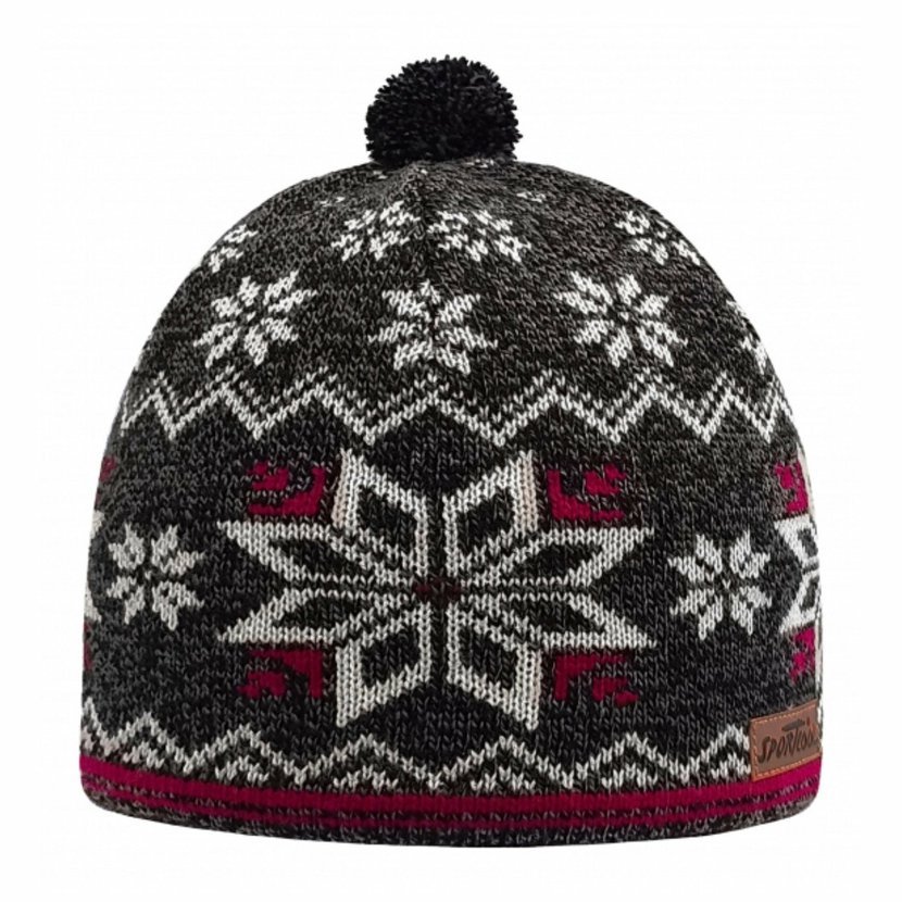 Čiapka norsky vzor brmbolec šedo-bielá