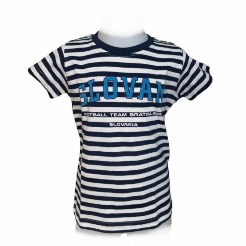 Detské pruhované tričko s nápisom Slovan – Football Team Bratislava, Slovakia. Ideálne pre malých fanúšikov klubu Slovan Bratislava. Pohodlný strih a kvalitný bavlnený materiál.