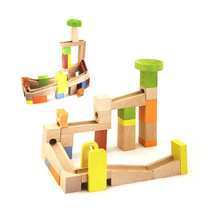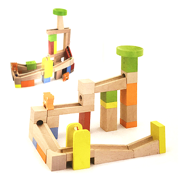 Hra obsahuje 49 drevených farebných súčiastok v guľatom boxe, ktoré poskytnú dieťaťu dokonalú zábavu. Dieťa si môže urobiť vlasnú vodiacu dráhu pre guličku.