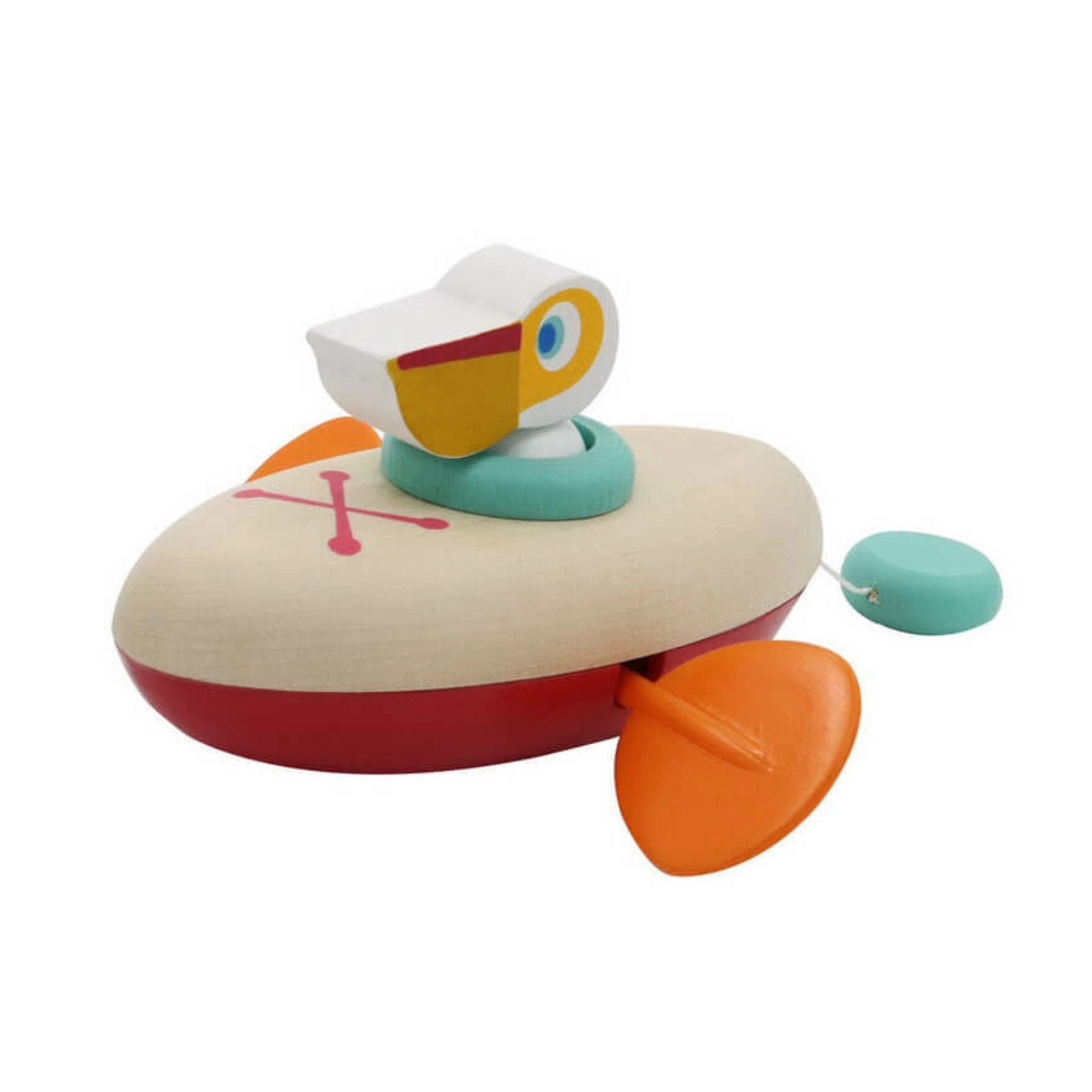 Drevená mini hračka kanoe kačka (so zotrvačníkom)