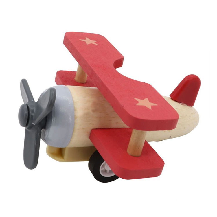 Drevená mini hračka lietadlo zotrvačník červené