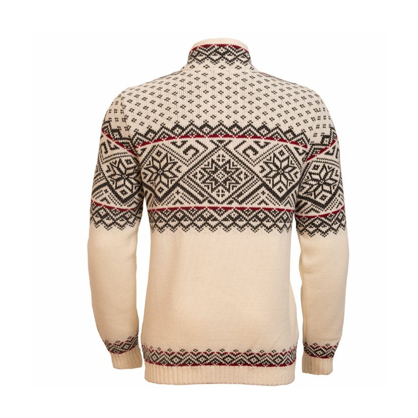 Nepoužívajte aviváž. Pánsky športový sveter s klasickým nórskym vzorom vhodný ako stredná vrstva oblečenia. Hrubé prevedenie úpletu, praktický dlhý zips, dve vonkajšie vrecká na zips. Je vyrobený z kvalitnej zmesovej priadze so 60% podielom akrylu a 40% podielom vlny.