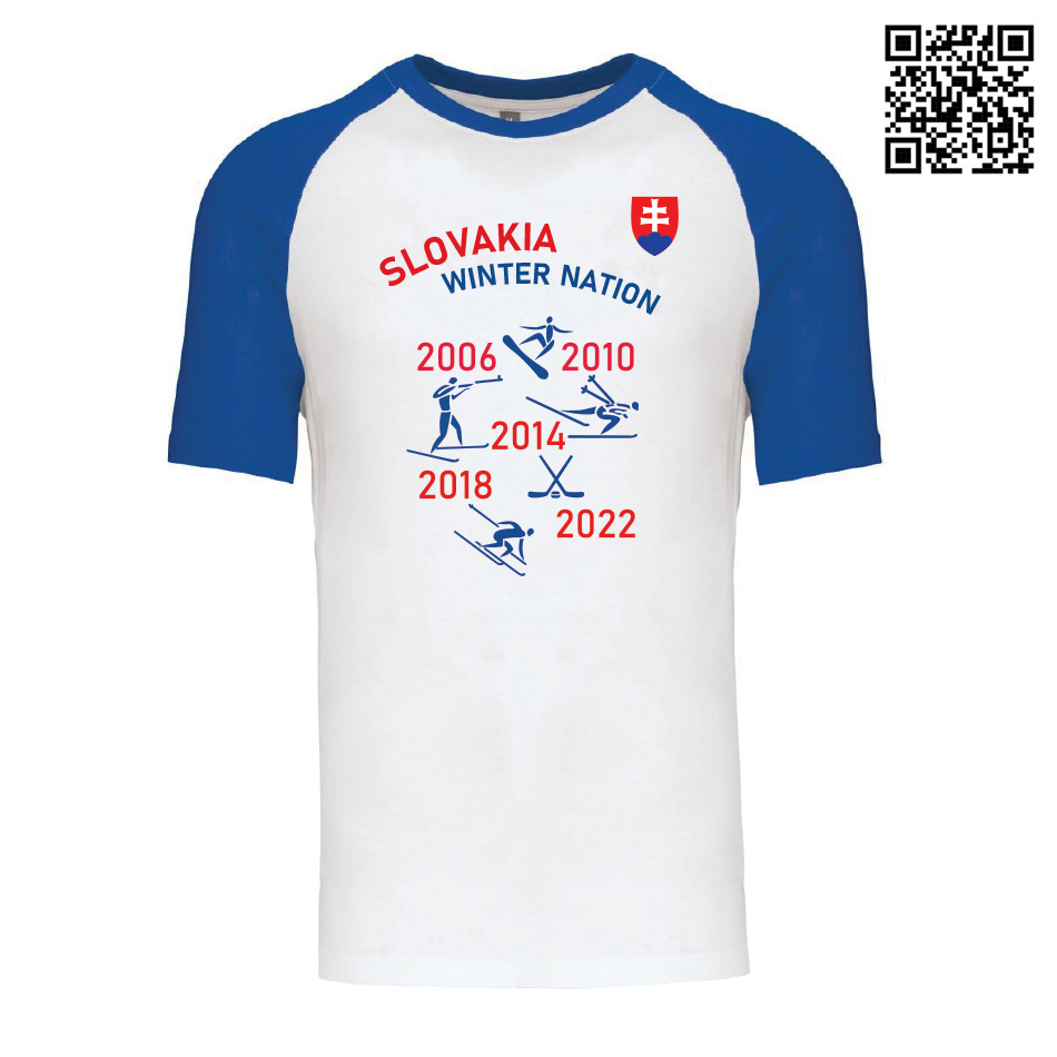 Farebne kontrastné tričko, ktorým budete prezentovať úspešné roky po vzniku Slovenskej republiky. Tričko má visačku s QR-kodom, kde si môžete prečítať, v ktorom roku, kto zo slovenských športovcov získal medailu. Golier s Lycra®, lem okolo krku, raglánové rukávy v kontrastnej farbe, dvojité šitie na rukávoch, krku a leme.